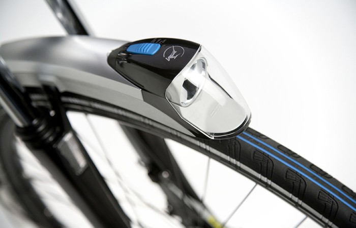 FenderVision is een in het spatbord geïntegreerde koplamp. Molestbestendig, met een in hoogte verstelbare lichtbundel en de keuze uit drie lichtstanden: on, off, auto.