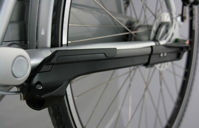 De nieuwe PowerClick Evo integrated is nu fraai geïntegreerd met de liggende achtervork. Niet alleen behoudt de standaard zijn stabiliteit maar voor het oog vormt de standaard nu één fraai geheel met het frame.