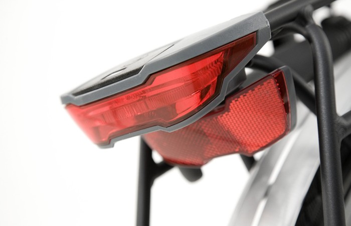 Een nieuwe signatuur voor de Gazelle E-bike. Een achterlicht die op de BMW i8 elektrische auto is geïnspireerd, de drie lichtbundels zorgen voor extra zichtbaarheid en dus meer veiligheid.