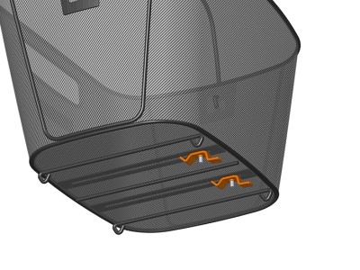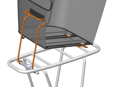 De afneembare optie werkt met een springveer. Je duwt de twee haken van het mandje simpelweg door de spijlen van je bagagedrager en zet het mandje vervolgens vast met de springveer.
