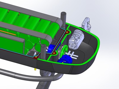 Designvisie: de beste techniek en functionaliteit te combineren met een top esthetisch product met een hoge designwaarde. De drager en accu als één geheel ontworpen en voldoende ruimte creëren voor de cellen configuratie.