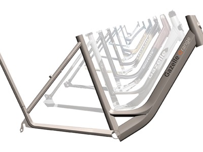 In dit nieuwe ontwerp is het frame ontworpen vanuit de gedachte dat het e-bike systeem en het frame één geheel lijkt. De uitdaging werd daardoor groter, het bracket is centraal punt veel kabels kruisen zich rondom het bracket, maar het brackt moet sterk genoeg zijn om de frame met elkaar te verbinden. Ook de montagevriendelijkheid speelt een grote rol in het ontwerp. Hoe vind je een oplossing voor al die vragen en tegelijkertijd een mooi ontwerp zonder zichtbare lasnaden en volgens de hoge kwaliteitseisen van Gazelle. Dit is gelukt door met veel specialisten te gaan praten, kennis en ervaring van verschillende personen met elkaar te verbinden, met de tekeningen onder de arm naar China te reizen en uitgebreid met de leveranciers co-engineering toe te passen. Het resultaat is een volledig geïntegreerde middenmotor in het frame, geen zichtbare lasnaden, een brede en lage instap, stijver dan zijn voorganger, montagevriendelijker, herkenbaar, voorzien van een modern design en moderne technologie.
