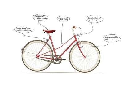 Het stalen frame, geïnspireerd op het model van de Tour de France uit 1915, verbindt nostalgie met moderne styling. Door de zes belangrijke pijlers (retro-functioneel-aandacht voor details-trendy-minimalistisch-sportief) in acht te nemen heeft dit geresulteerd tot een stijlvolle fiets met een strak en clean ontwerp.
